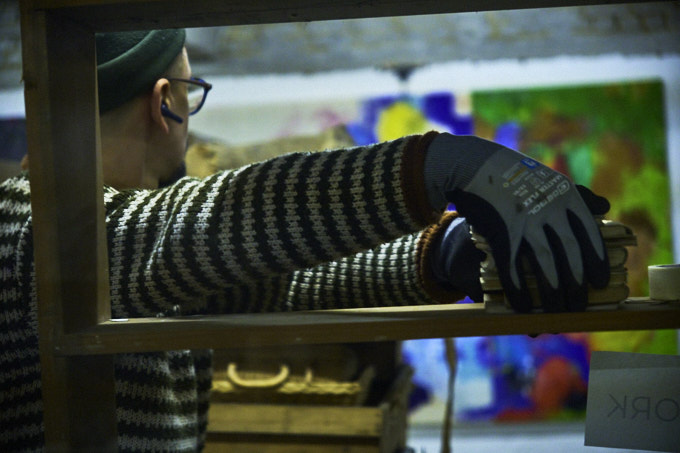 Heute war ich zum Fotoshooting zur Ausstellungseröffnung mit Performance im MOSI. Artist in Residence, also momentan ist der Künstler in der Residenz Genady Arkhipau. Von der HBK in die Welt. Zu sehen war die Performance „Busywork„. Nebenher wieder einige Werke von anderen Künstlern. Groß- und Kleinformatiges, Video sowie Installationen. Die Ausstellung geht noch bis Sonntag im MOSI, Büssing-Hof, Braunschweig.