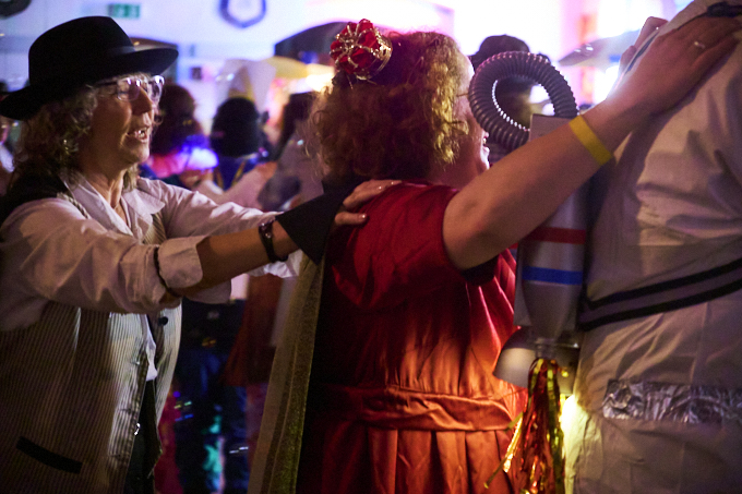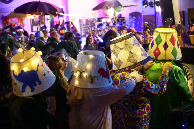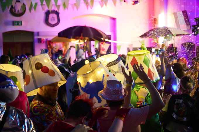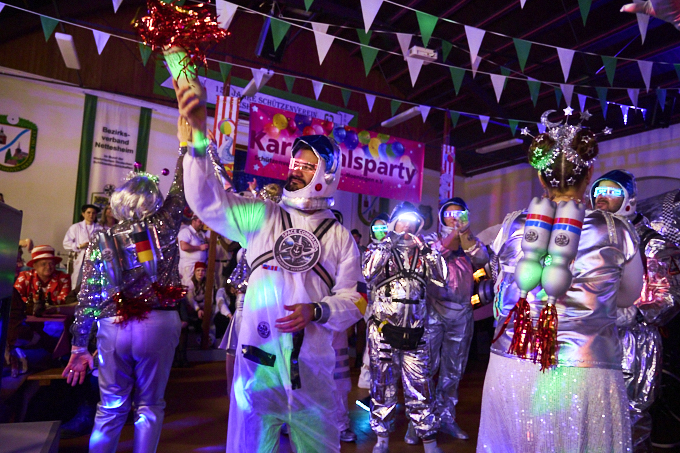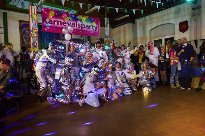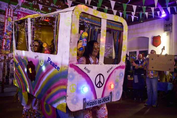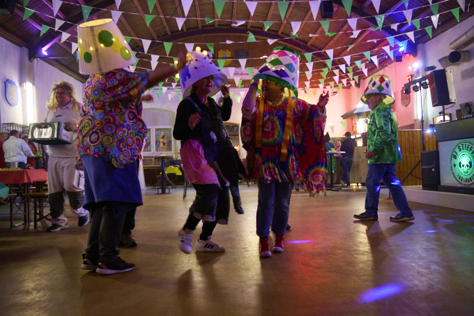 Große Karnevalsparty am Samstag in Widdeshoven. Gute Stimmung, tolle Kostüme und eine Liveband gab es auch. Dazu Kölsch und Schnäppse. Gerda als Herzkönigin mit ihrem Flamingo und ich als Igel, der Ball für das Krocket-Spiel. Die Truppe mit der wir unterwegs waren sind als Lampen der 70er unterwegs gewesen. Eine super Gruppe waren auch die Raumfahrer mit großer Rakete. Schön zu sehen, dass soviel Herzblut in die Vorbereitungen gesteckt wird.